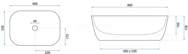 REA Belinda Savana keramické obdĺžnikové umývadlo na dosku 47x34 cm matné U3323 REA-U3323