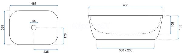 REA Belinda Sandy keramické obdĺžnikové umývadlo na dosku 46,5x33 cm matné U4000 REA-U4000
