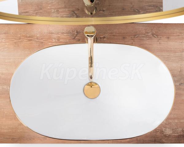 REA Royal keramické oválne umývadlo na dosku 62,5x36 cm Biele lesklé/Zlatý okraj U8570 REA