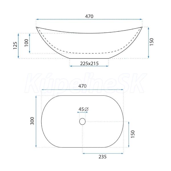 REA Royal Mini keramické oválne umývadlo na dosku 47x30 cm Biele lesklé U6507 REA-U6507