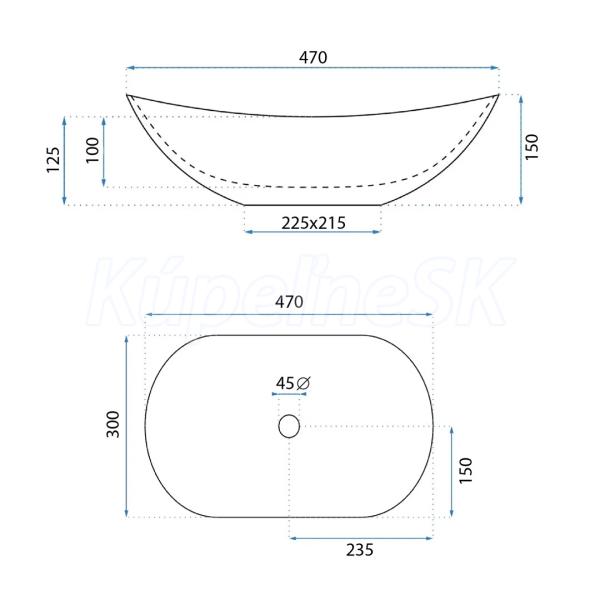 REA Royal Mini Aiax Shiny keramické oválne umývadlo na dosku 47x30 cm U5063 REA-U5063
