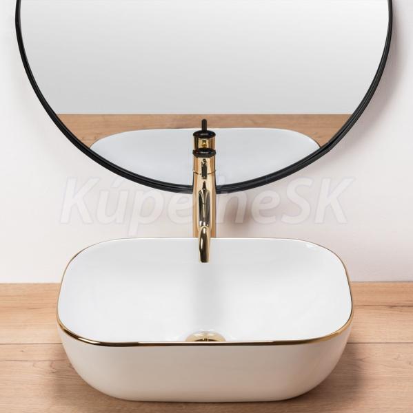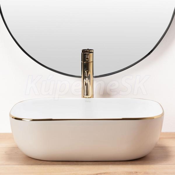 REA Belinda keramické obdĺžnikové umývadlo na dosku 46,5x32cm Biela lesk/Zlatý okraj U8736