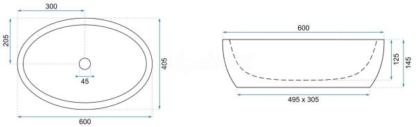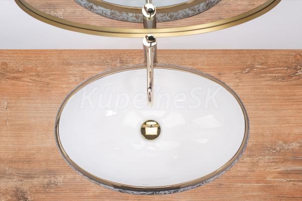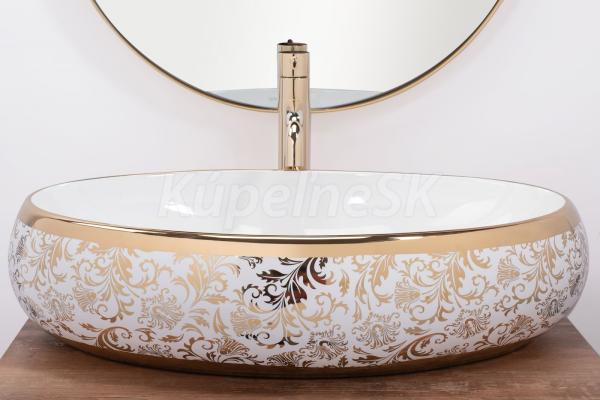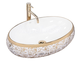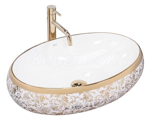 REA Meryl keramické oválne umývadlo na dosku 60x40,5 cm Biela lesklá/ Zlatý vzor U5054 REA