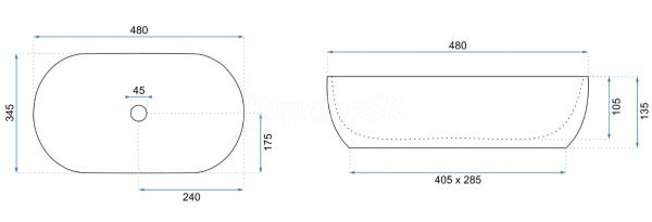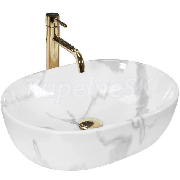 REA Amelia Marmo Shiny keramické oválne umývadlo na dosku 48x34,5 cm U8001 REA-U8001