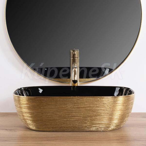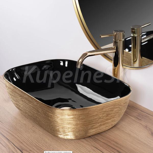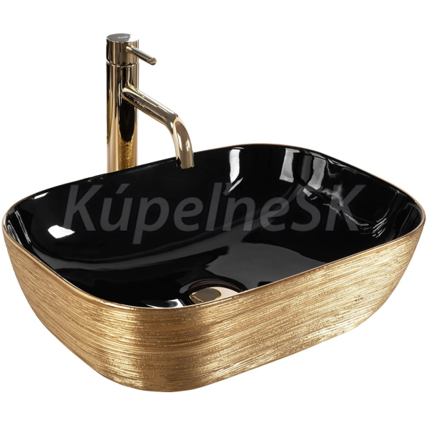 REA Belinda keramické obdĺžnik umývadlo na dosku 46,5x33cm brúsené Zlato/Čierna lesk U8780