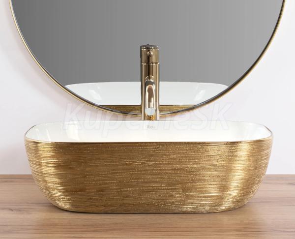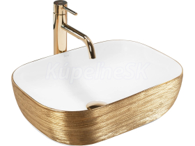 REA Belinda keramické obdĺžnik. umývadlo na dosku 46,5x33cm brúsené Zlato/Biela lesk U7422