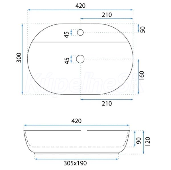 REA Aura 42 keramické oválne umývadlo na dosku 42x30 cm Biele lesklé U6617 REA-U6617