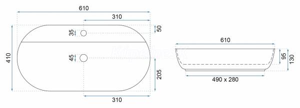 Umyvadlo Rea Aura v zaujímavom, eliptickom tvare dokonale doplní každý moderný interiér. Je vhodné na montáž na doske alebo na skrinku. Umyvadlo nie je úplne zakryté, má vyrez na zadnej strane pri otvore na montáž batérie.