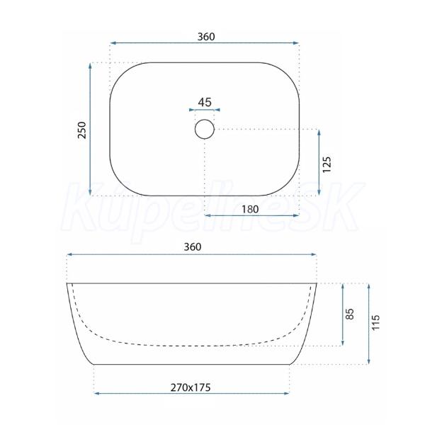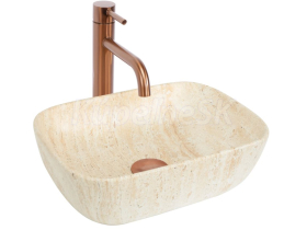REA Belinda Mini Travertine keramické obdĺžnikové umývadlo na dosku 36x25 cm matné U4700 R