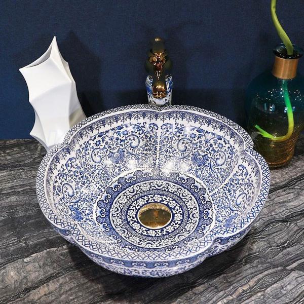 Umyvadlo vyrobené z najkvalitnejšej keramiky v bielej farbe a kruhovom tvaru. Povrch s vysokým leskom a modrým vzorom dodáva eleganciu, zdobí interiér. Bude fungovať ako praktické riešenie, celok je veľmi ľahko udržiavateľný v čistote. Výborný doplnok pre milovníkov oválnych tvarov, vnáša eleganciu do usporiadania kúpeľne v dome aj v kancelárii.