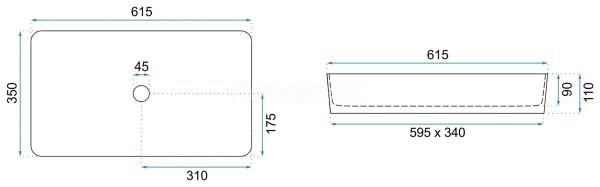 REA Denis Black Stone keramické obdĺžnikové umývadlo na dosku 61,5x35 cm matné U6510 REA-U