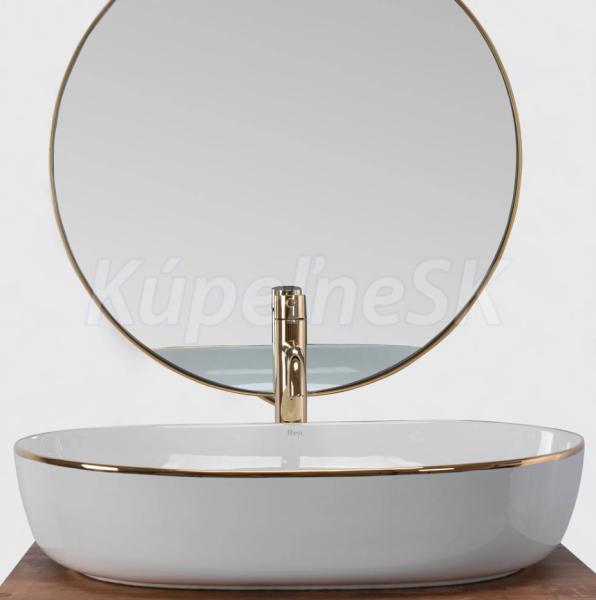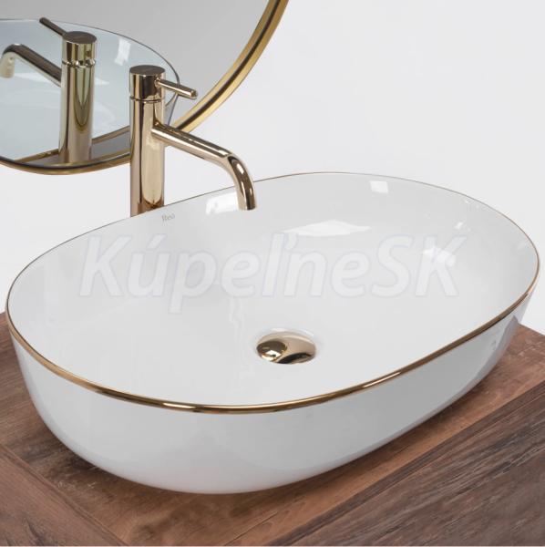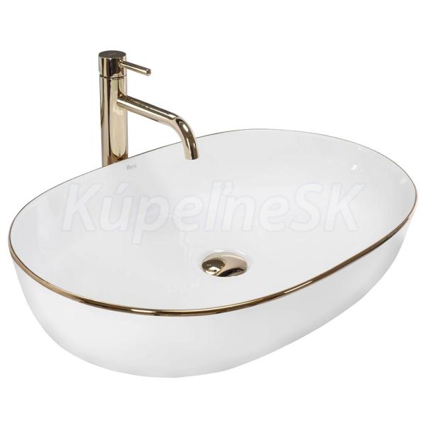 REA Cleo 61 keramické oválne umývadlo na dosku 60,5x41 cm Biele lesklé/Zlatý okraj U6211 R