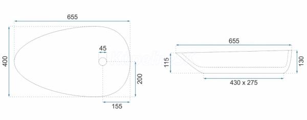 REA Greta 65 Bianco Shiny keramické asymetrické umývadlo na dosku 65,5x40 cm U6501 REA-U65