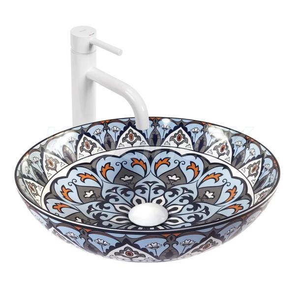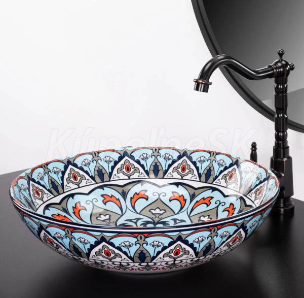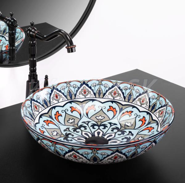 REA Mexico keramické okrúhle umývadlo na dosku priemer 40 cm Vzorované lesklé U6030 REA-U6