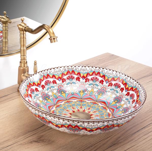 >>  Umývadlá  >>  Umývadlá na dosku  >>  REA Peru keramické okrúhle umývadlo na dosku priemer 40 cm Vzorované lesklé U6031 REA-U603