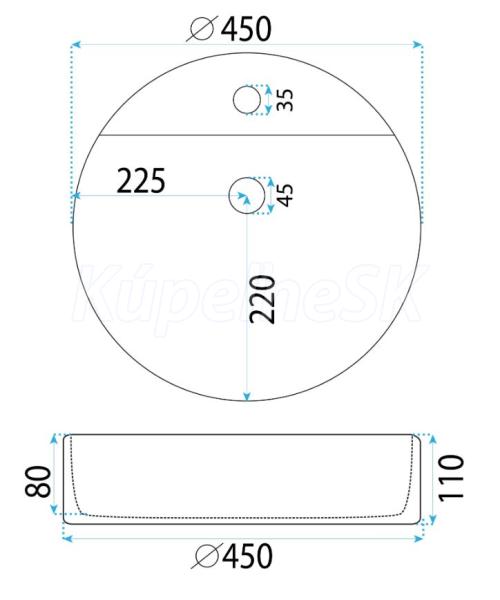 REA Ronda keramické okrúhle umývadlo na dosku priemer 45 cm Biele lesklé U6622 REA-U6622