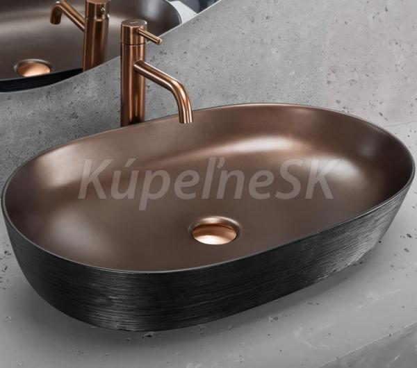 REA Cleo 61 keramické oválne umývadlo na dosku 60,5x41 cm brúsená Meď/Čierna matná U6383 R