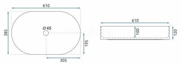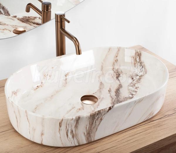 REA Nadia 60 Marrone keramické oválne umývadlo na dosku 61x38,5 cm lesklé U9239 REA-U9239