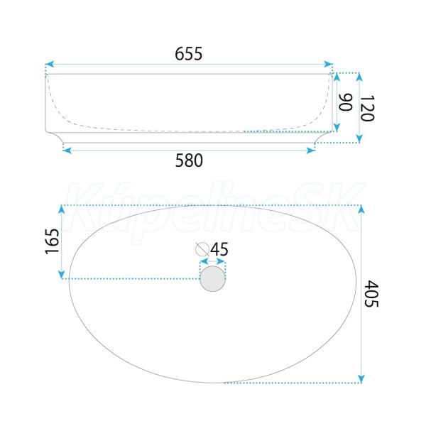 REA Sabina 65 keramické oválne umývadlo na dosku 65,5x40,5 cm Biele lesklé U6363 REA-U6363