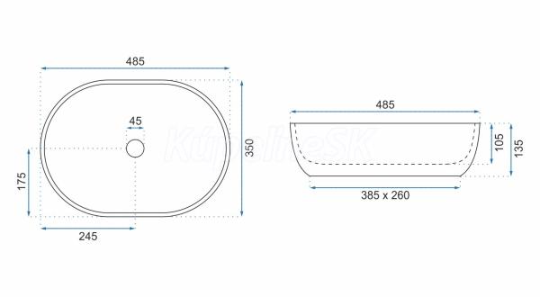 REA Lara Beige keramické oválne umývadlo na dosku 48,5x35 cm matné U9887 REA-U9887