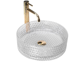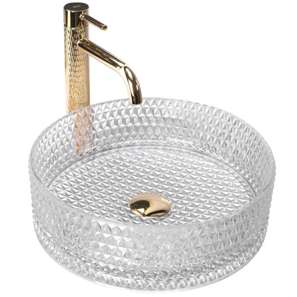 Moderná kryštalová umývadlo zo série Cristal bude výnimočne vynikať vo vašej štýlovej kúpeľni. Bola vyrobená z vysoko kvalitného skla, prispôsobená na montáž na doske alebo skrinke. Zaujímavý vizuálny efekt podčiarkne odrážajúce sa svetlo v kryštálikoch. Umývadlo s kryštalovým povrchom nepochybne vyniká zaujímavým dizajnom a štýlom.