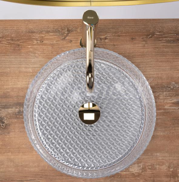 REA Cristal sklenené okrúhle umývadlo na dosku priemer 35,5 cm Transparentné lesklé U9670