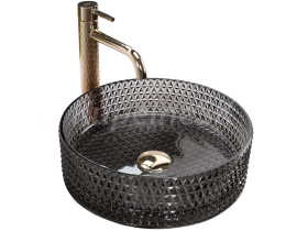 Moderná krištáľová umývadlo zo série Cristal bude skvele vynikať vo vašej štýlovej kúpeľni. Bola vyhotovená z vysoko kvalitného skla, vhodná na montáž na dosku alebo na skrinku. Zaujímavý vizuálny efekt zvýrazní odraz v kryštáli