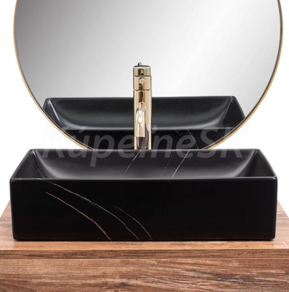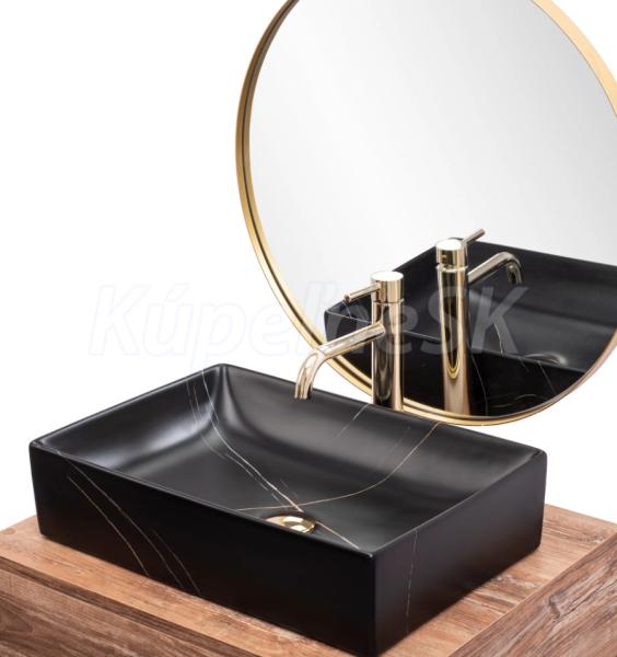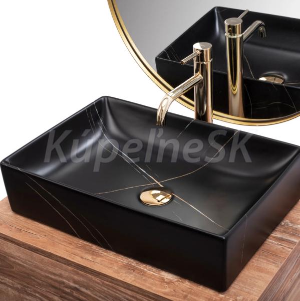 Krásna a mimoriadne funkčná umývadlo Inga v čiernej farbe so zlatými žilami imitujúcimi prírodný kameň. Každý kus má jedinečný a unikátny vzor. Je to výrobok, ktorý výborne doplní váš priestor v kúpeľni.