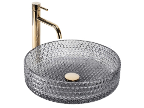 REA Cristal sklenené okrúhle umývadlo na dosku priemer 39 cm Grey lesklé U8880 REA-U8880