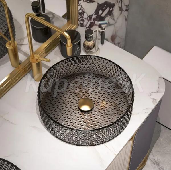Moderná kryštálová umývadlo zo série Cristal sa bude skvele vynímať vo vašej štýlovej kúpeľni. Bola vyrobená z vysokokvalitného skla, je prispôsobená na montáž na doske alebo na skrinke. Zaujímavý vizuálny efekt zvýrazní svetlo odrážajúce sa v kryštáľoch. Umývadlo s kryštálovým povrchom nepochybne vyniká zaujímavým dizajnom a štýlom.
