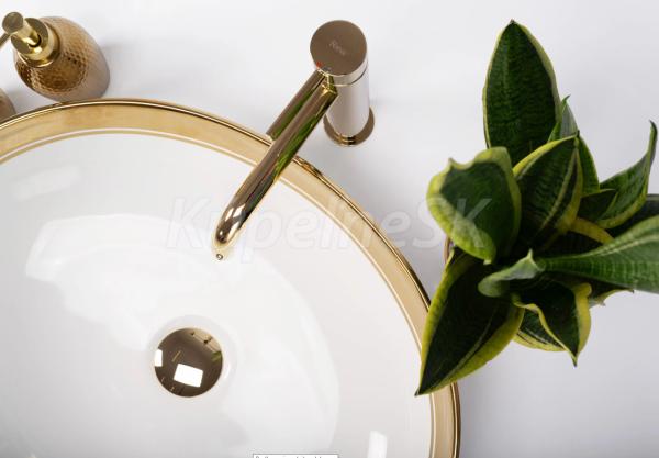 REA Margot keramické oválne umývadlo na dosku 52x40 cm Biela lesklá/Zlatý Vzor U9650 REA-U
