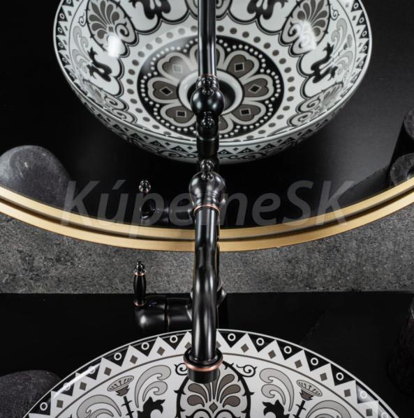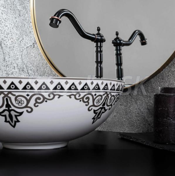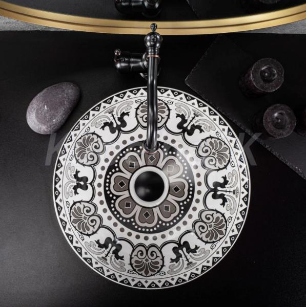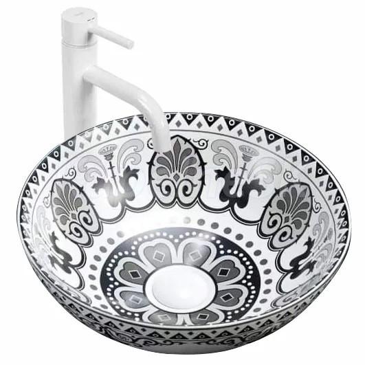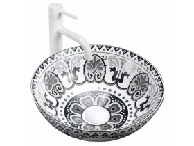 REA Etno keramické okrúhle umývadlo na dosku priemer 40 cm Biela lesklá/Vzor U7500 REA-U75