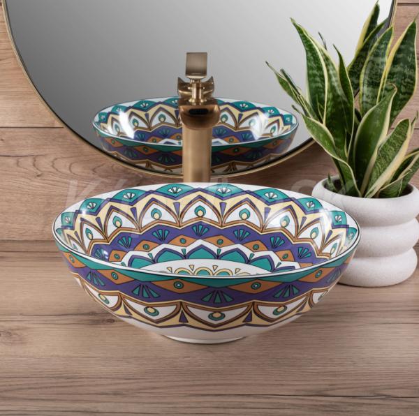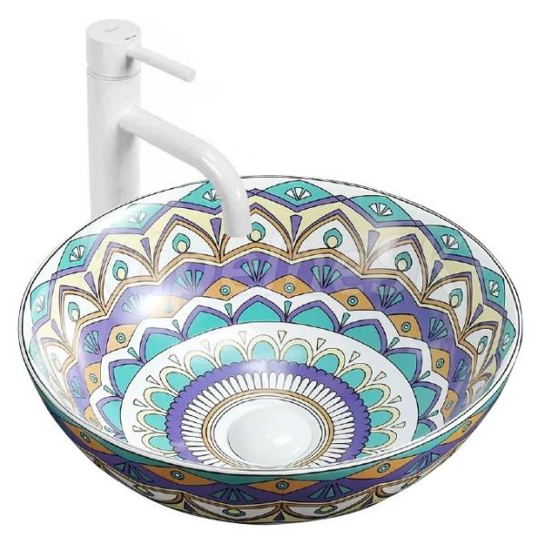 REA Aztec keramické okrúhle umývadlo na dosku priemer 40 cm Vzorované U7501 REA-U7501