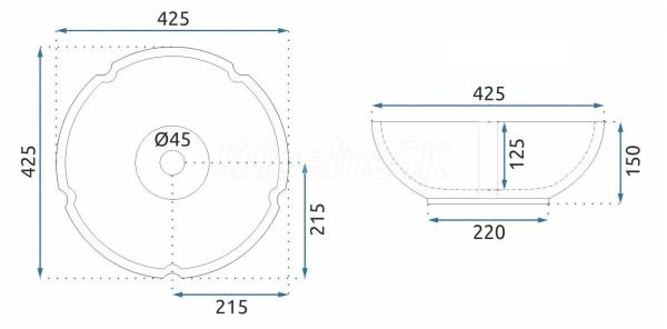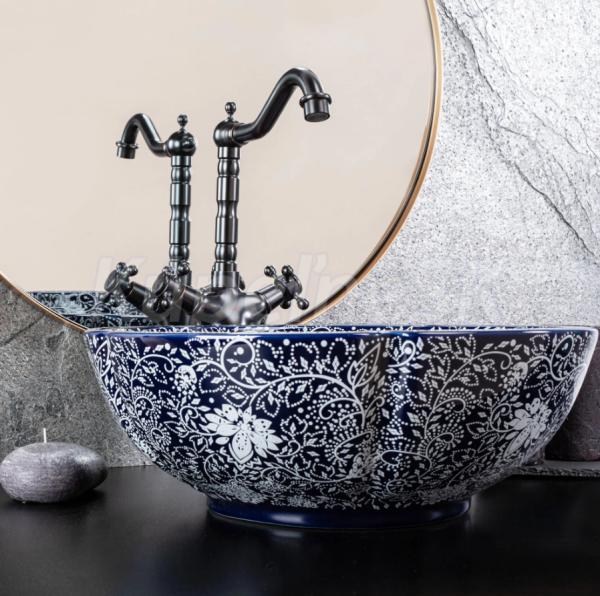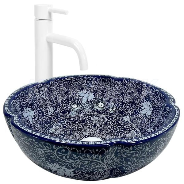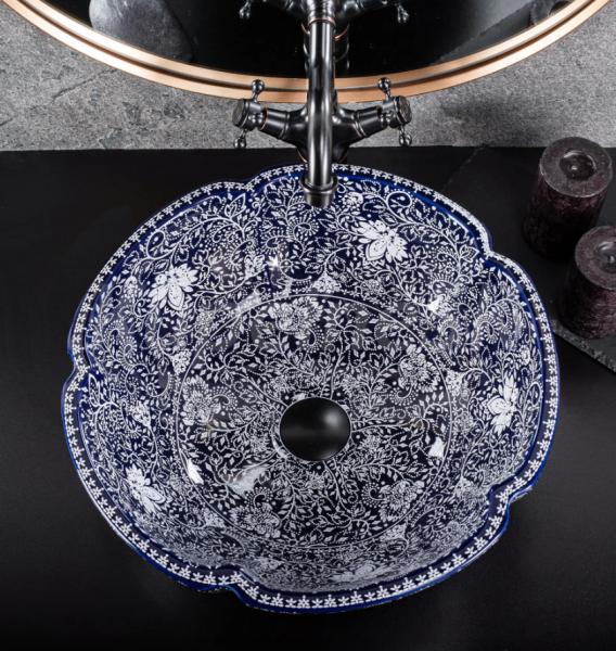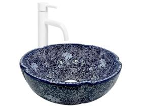 REA Sevilla keramické okrúhle umývadlo na dosku priemer 42,5cm Modré lesk/Biely Vzor U7505