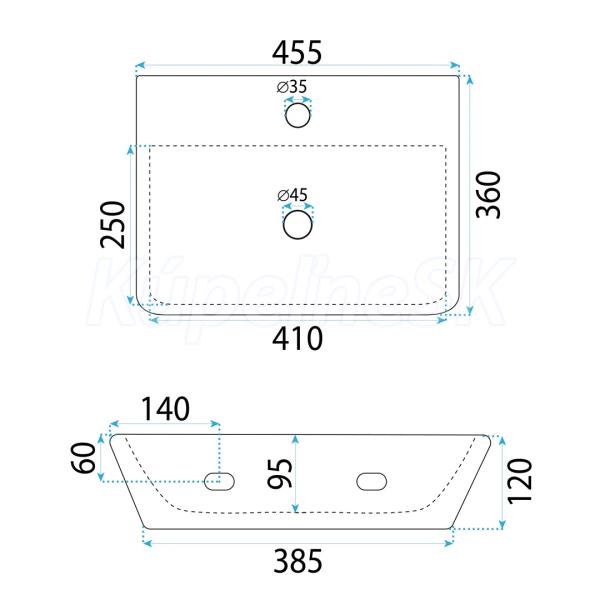 REA Altea Cloudy keramické obdĺžnikové umývadlo na dosku 45,5x36 cm lesklé U9242 REA-U9242