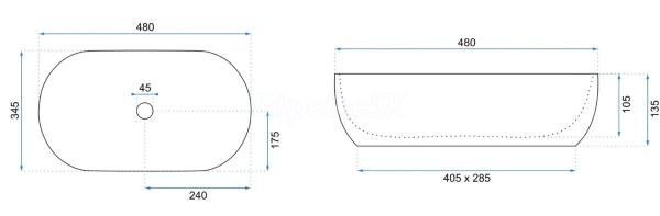 REA Amelia Ash keramické oválne umývadlo na dosku 48x34,5 cm matné U8489 REA-U8489