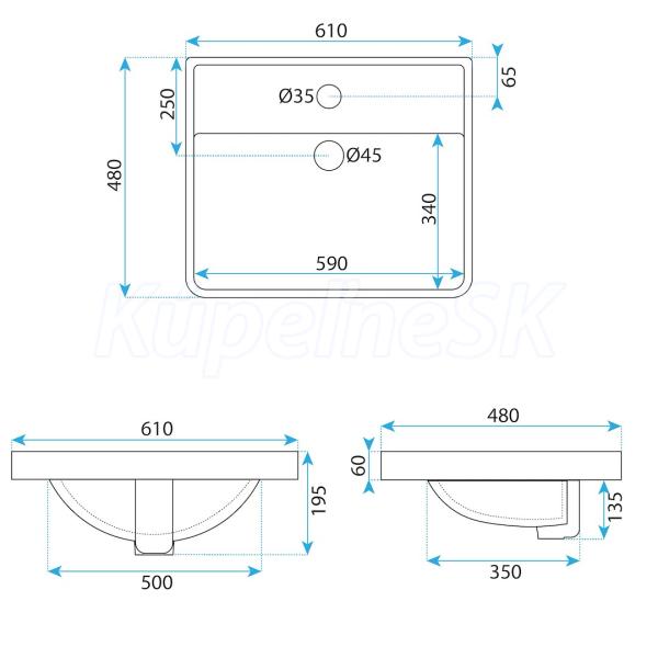 REA Alisha keramické obdĺžnikové zápustné umývadlo 60x48 cm Biele lesklé U8424
