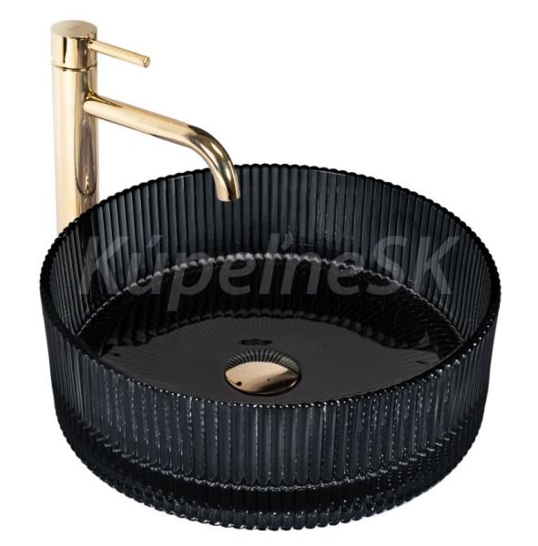 REA Ingrid Black sklenené okrúhle umývadlo na dosku priemer 36 cm lesklé U8520 REA-U8520