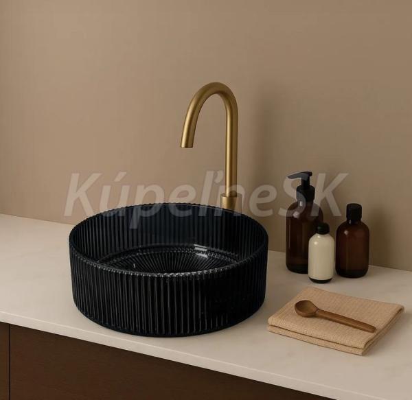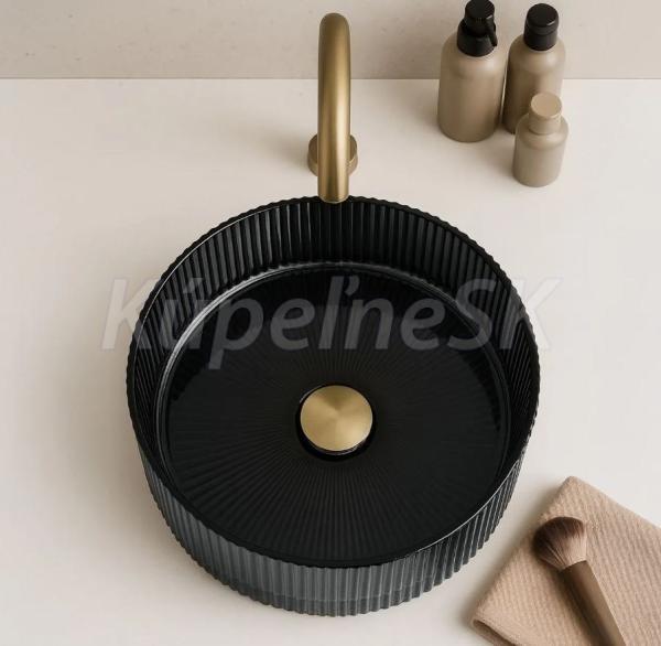 REA Ingrid Black sklenené okrúhle umývadlo na dosku priemer 36 cm lesklé U8520