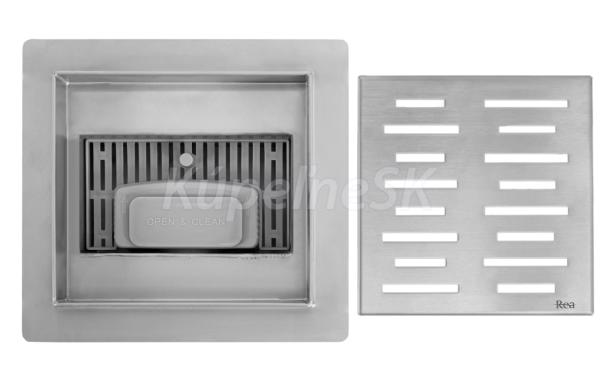 Rea Line nerezový odtokový sprchový žľab 2v1 150x150 mm so sifónom brúsená Nerez REA-G6205