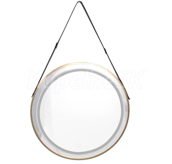Rea Tutumi Led rámové zrkadlo priemer 60 cm zavesené na remienku brús Zlato/Čierna YH-3339