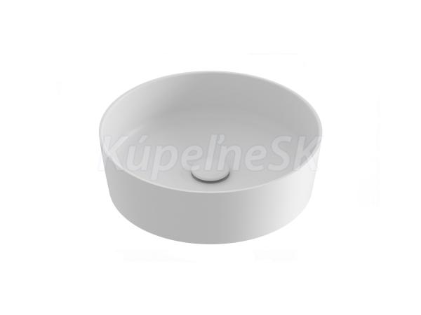 Tenkostenné keramické umývadlo Uni Slim k inštalácii na dosku alebo skrinku, bez prepadu. Biele matné vyhotovenie.