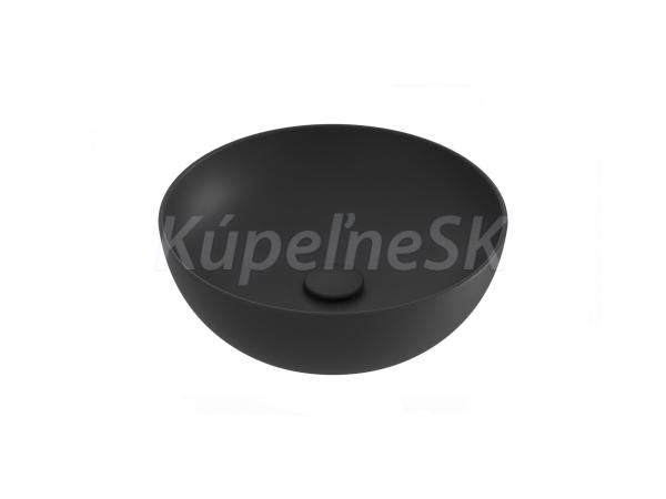 Tenkostenné keramické umývadlo Uni Slim k inštalácii na dosku alebo skrinku, bez prepadu. Čierne matné vyhotovenie.