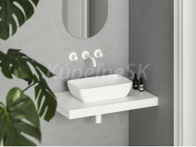 - doplnky k dokúpeniu: doska pod umývadlo / skrinka pod umývadlo na dosku, umývadlová pileta pevná, keramická pileta Flat, sifón čierny alebo nábytkový, extra predĺžené batérie Chrome II, 10°, Puri, Espirit alebo Eleganta
