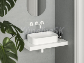 doplnky k dokúpeniu: doska pod umývadlo / skrinka pod umývadlo na dosku, umývadlová pileta pevná, keramická pileta Flat, umývadlový sifón alebo nábytkový, extra predĺžené batérie