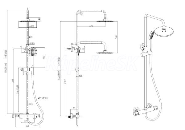 - Regulovateľná výška hlavovej sprchy 671 - 1020 mm