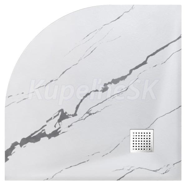 BESCO Štvrťkruhová sprchová vanička VEXO MARBLE 90x90x3,2 cm biela, R550