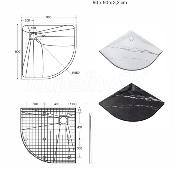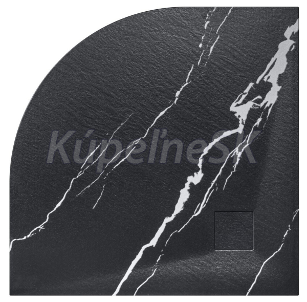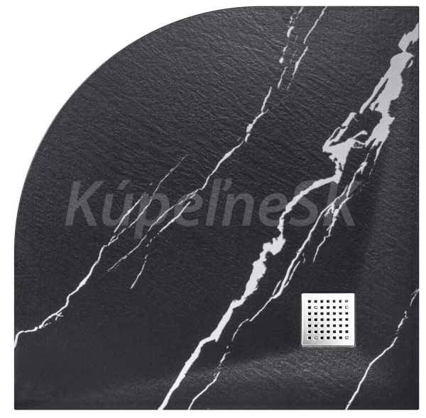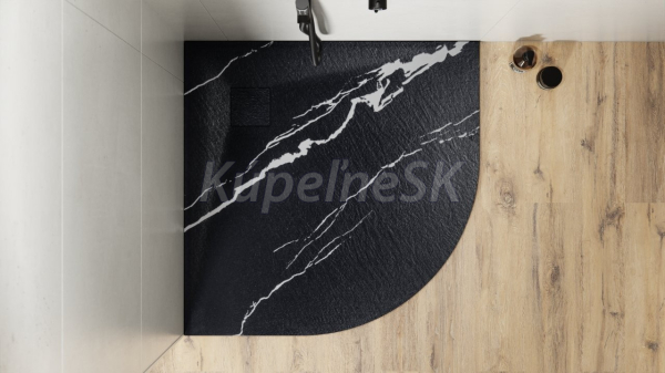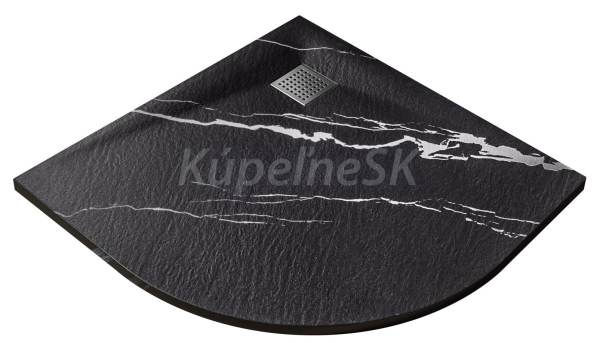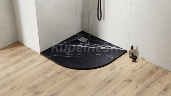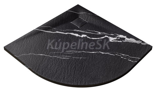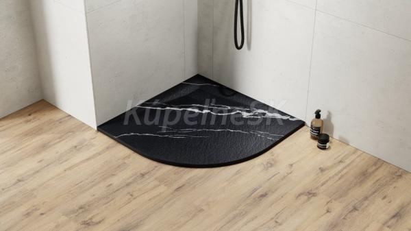 BESCO Štvrťkruhová sprchová vanička VEXO MARBLE 90x90x3,2 cm čierna, R550