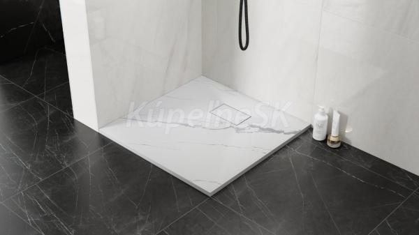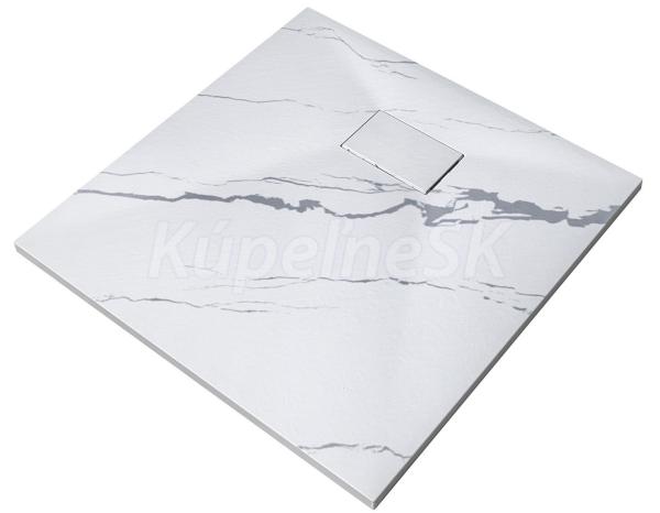 BESCO Štvorcová sprchová vanička VEXO MARBLE 90x90x3,2 cm Biela