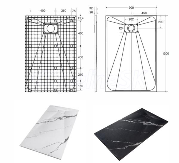 Elegantná ultratenká sprchová vanička VEXO MARBLE biela je vyrobená zo špeciálneho SMC materiálu. Dodáva sa vrátane sifónu, ale bez nožičiek. Krytka sifónu je súčasťou balenia.